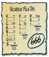 (Our Sunday Vi s i tor 18/4/1915) . În lat ină unele litere au valoare numerică. Dacă adunăm valoarea numerică co-respunzătoare acestui titlu de funcţie, obţinem