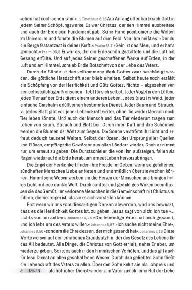 Es gibt kein anderes Buch, welches die Lebensgeschichte des Sohnes Gottes während Seines Erdenlebens so wahrheitsgetreu wiedergibt, wie dieses Werk. Im Gegensatz zu den anderen Büchern über das Leben unseres Erlösers, wurde diese Ausgabe unter der Inspiration des Geistes Gottes geschrieben. Vom himmlischen Geist durchwebt, können wir hier den Herrn Jesus selbst, wie in keinem anderen Werk außer in der Bibel, erkennen. Diesen Segen kann jeder erhalten, der diese Seiten mit Herz und Verstand durchforscht und bereit ist, sich dabei vom Heiligen Geist führen zu lassen.