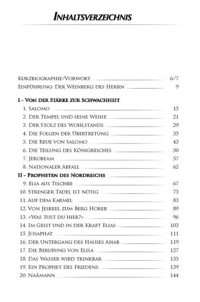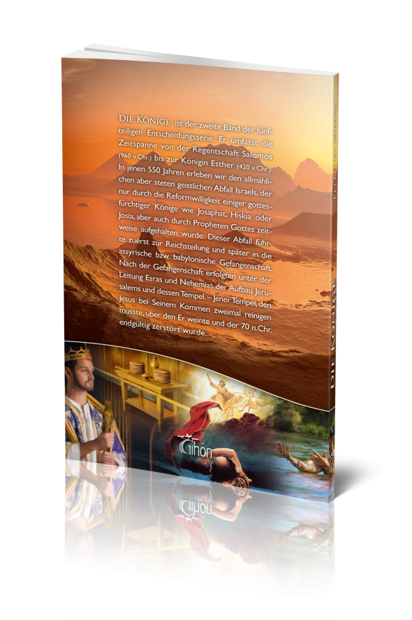Die Könige ist der zweite Band der fünfteiligen Entscheidungsserie. Er umfasst die Zeitspanne von der Regentschaft Salomos (960 v.Chr.) bis zur Königin Esther (420 v.Chr.). In jenen 550 Jahren erleben wir den allmählichen aber steten geistlichen Abfall Israels, der nur durch die Reformwilligkeit einiger gottesfürchtiger Könige wie Josaphat, Hiskia oder Josia, aber auch durch Propheten Gottes zeitweise aufgehalten wurde. Dieser Abfall führte zuerst zur Reichsteilung und später in die assyrische bzw. babylonische Gefangenschaft. Nach der Gefangenschaft erfolgten unter der Leitung Esras und Nehemias der Aufbau Jerusalems und dessen Tempel. – Jener Tempel, den Jesus bei Seinem Kommen zweimal reinigen musste, über den Er weinte und der 70 n.Chr. endgültig zerstört wurde.